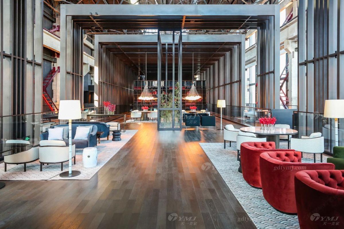 项目介绍:本项目酒店位于北京首钢园核心区域,作为北京冬奥会官方接待酒店,酒店家具在设计之初就需要融入到酒装的装修设计中,即以首钢电力厂整体建筑框架风格以及周边自然环境为设计灵感,同时加入了现代工业主义风格和亚洲元素,使得每件家具产品、酒店多种常绿植物、红色钢制旋转楼梯相互串联起来,融为一体,为整个视野带来一抹亮色,深受甲方肯定。